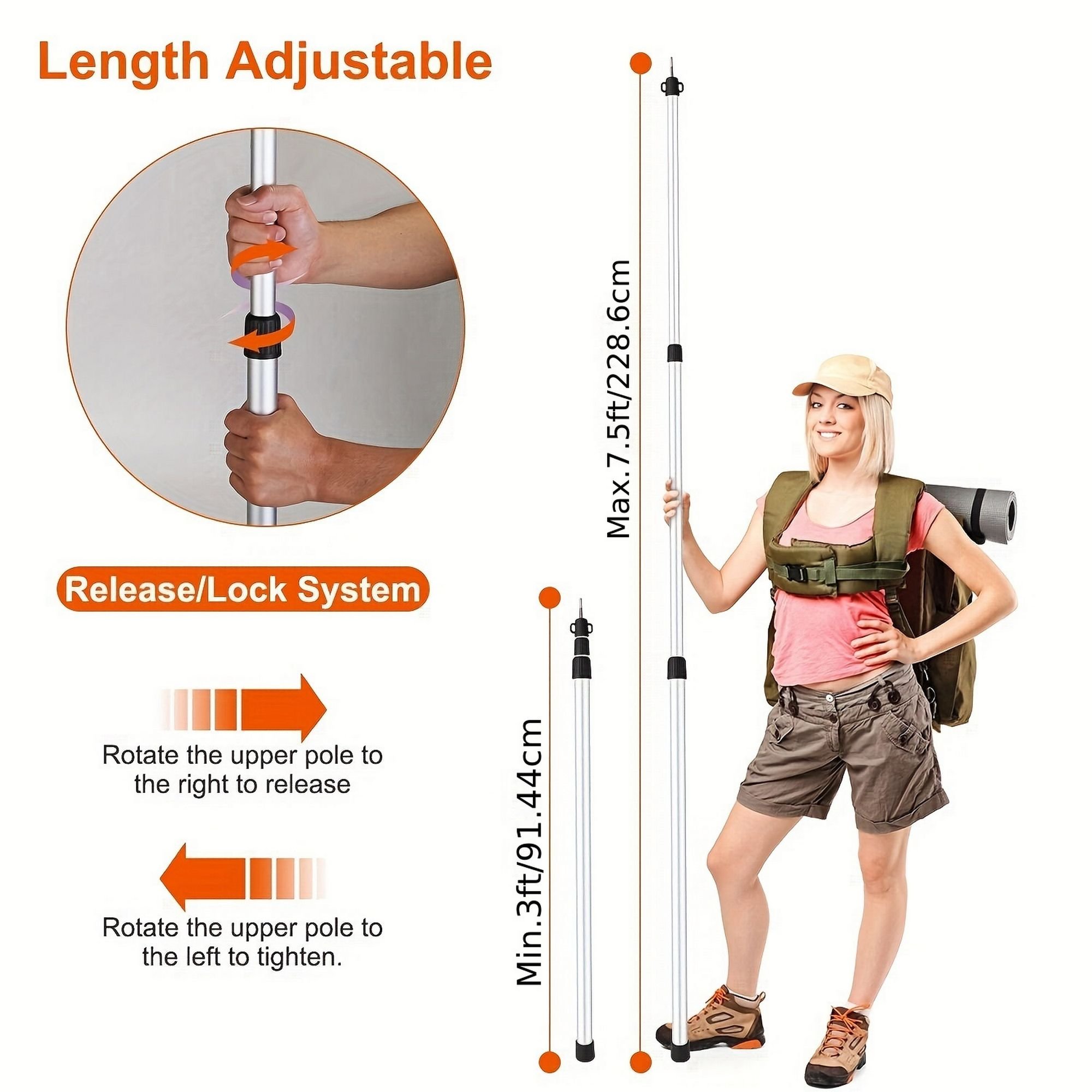 Home > 2Pcs Telescoping Tarp Poles Portable Aluminum Awning Poles 3ft to 7.5ft Adjustable Telescopic Tarp Tent Rods